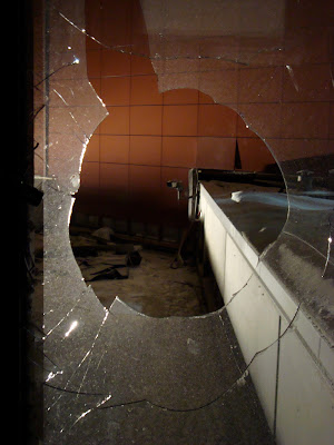 Pettymyksekseni sisältä ei löytänyt kuitenkaan muutamaa tägiä kummempaa graffitiosastoa, paitsi yksi kromipiissi. Viimeisestä kuvasta saattaa löytyä siihen selitys, eli kameravalvonta. Tosin uskallan ennustaa, että mitä pidemmälle purkutyöt edistyvät, sitä enemmän alkaa väriä ilmestyä raunioiden seinämille. Itse en sinne ole menossa maalaamaan, mutta näin ne jutut yleensä menee.