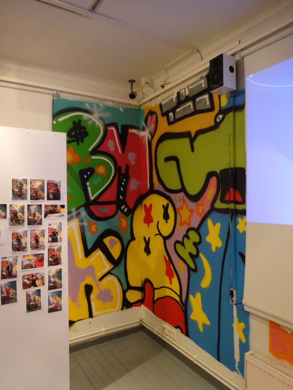 Näyttelyn ajan graffitia oli myös sisällä, paikallisten nykygraffareiden toteuttamana.
